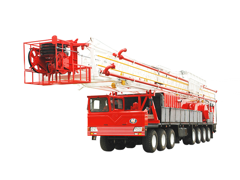 1. 車裝修井機(jī)采用柴油機(jī)驅(qū)動,動力匹配合理,傳動效率高、可靠性高,整機(jī)結(jié)構(gòu)緊湊,集裝化程度高,占地面積小。